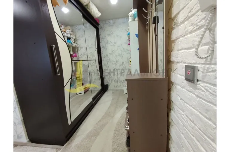 В квартире хороший косметический ремонт, на полу качественный линолеум. Сан узел совмещенный в кафеле. Ремонт свежий, можно заехать и жить без каких-либо вложений. Квартира очень теплая, светлая, находится на солнечной стороне, окна до двор. Новым собственникам остается кухонный гарнитур и шкаф в прихожей. Имеются счетчики на воду и газ.
