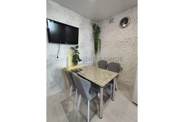 В квартире хороший косметический ремонт, на полу качественный линолеум. Сан узел совмещенный в кафеле. Ремонт свежий, можно заехать и жить без каких-либо вложений. Квартира очень теплая, светлая, находится на солнечной стороне, окна до двор. Новым собственникам остается кухонный гарнитур и шкаф в прихожей. Имеются счетчики на воду и газ.
